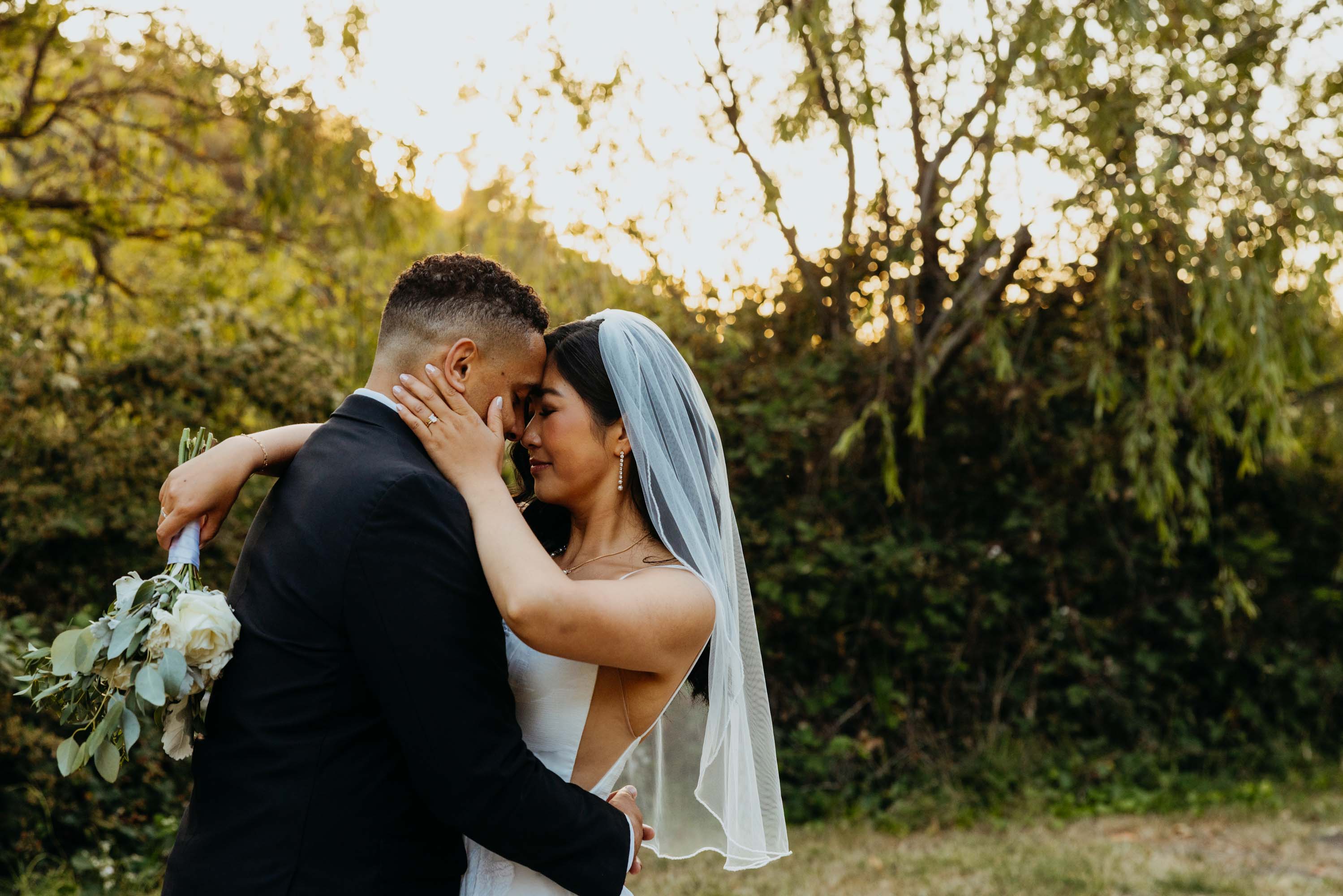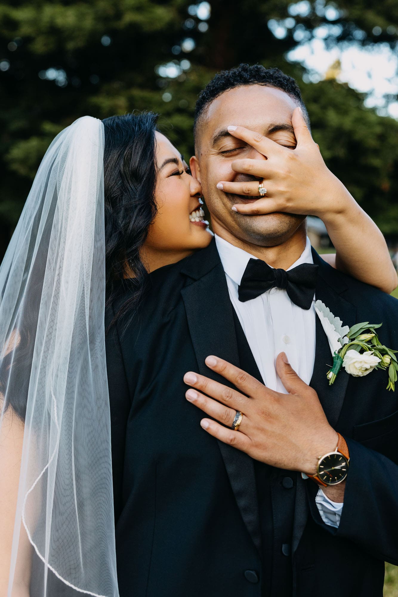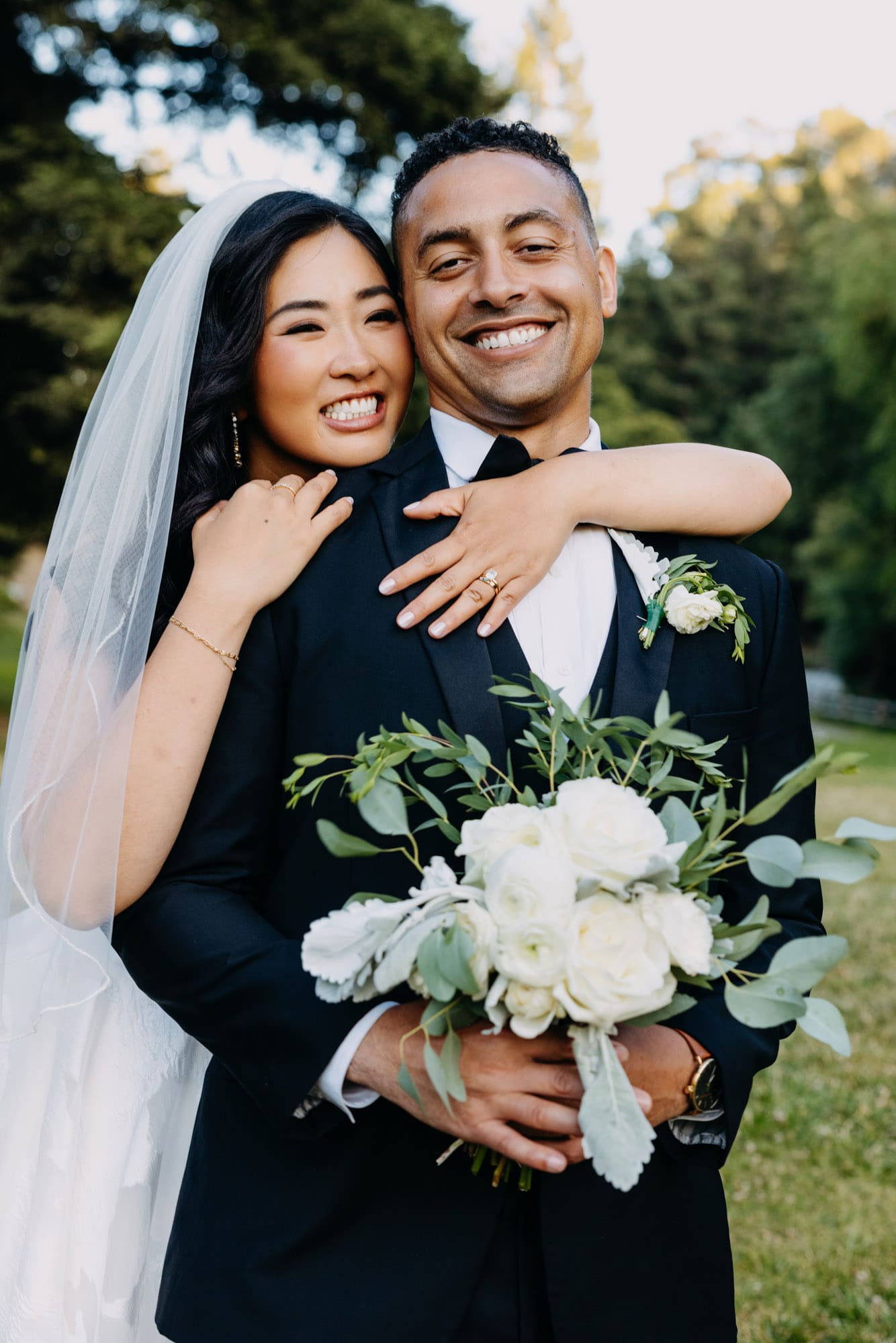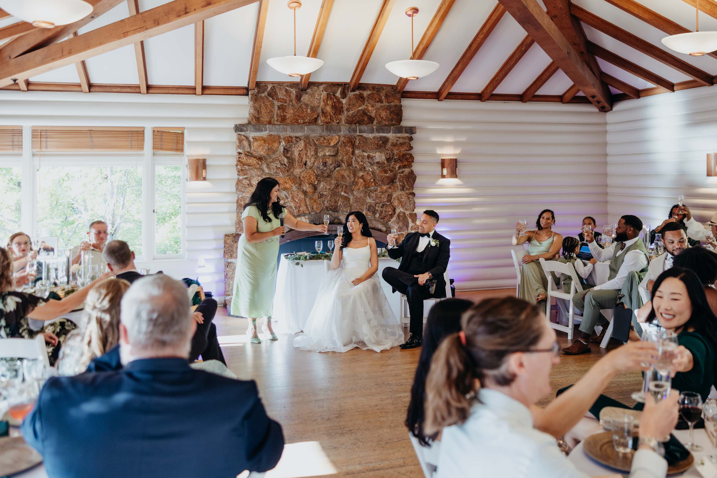 They started with a first look tucked into nature — Seonah waiting, Marco walking up — followed by candid moments with their pup, Coby, sweet portraits with Grandma Iverson, and special time set aside for Seonah’s mom and the kids. It all unfolded against a backdrop of eucalyptus greens, cozy woodsy vibes, and that laid-back energy they carried through the whole day. And yes, they nailed their first dance — complete with a swoon-worthy dip at the end we definitely captured.
